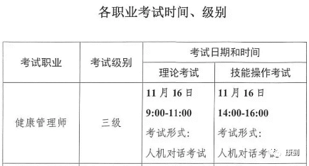 2019年第四次《健康管理师》国家职业资格(三级)鉴定考试时间为: